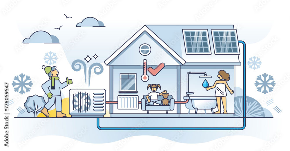 Illustration Luftwärmepumpe in Kombination mit Photovoltaik. (Bild: AdobeStock)