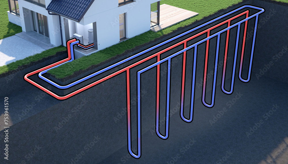 Die Erdwärmepumpe (auch: Sole-Wasser-Wärmepumpe) nutzt die sehr konstante Wärme des Erdreichs. Erdwärmepumpen weisen daher hohe COP-Werte von ca. 4,5 auf, moderne Geräte liegen teilweise sogar darüber. Um die Erdwärme zu nutzen, gibt es zwei Varianten: Erdsonden und Erdkollektoren. Die Installation von Erdsonden erfordern Tiefenbohrungen. Ein oder mehrere Rohre entziehen dem Erdreich Wärme. Das Kältemittel nimmt die Wärme auf und leitet diese an die Wärmepumpe weiter. Doch Tiefenbohrungen sind nicht überall erlaubt. Sie sind genehmigungspflichtig und es müssen vorab Bodengutachten eingeholt werden. Flächenkollektoren hingegen werden nur in 1 bis 1,5 Metern Tiefe verlegt. Sie benötigen jedoch große Flächen, um genug Wärme aufnehmen zu können – pro Kilowatt Heizleistung ca. 25 m². Dies entspricht in etwa dem 1,5- bis 3-fachen der beheizbaren Wohnfläche. Flächenkollektoren benötigen also eine Menge Platz und dürfen weder überbaut werden noch mit Baumwurzeln kollidieren.